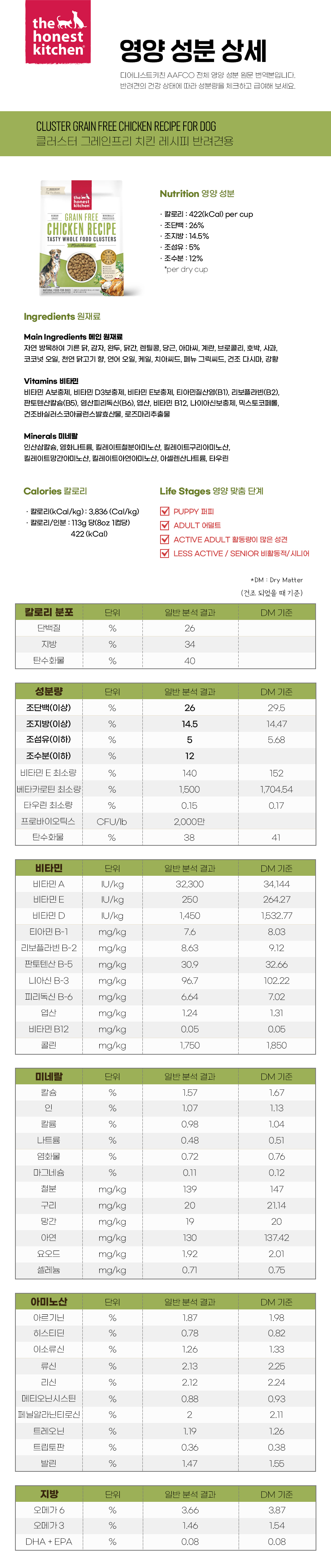 [디어니스트키친] 그레인프리 치킨 레시피 클러스터 (450g, 2.26kg, 9.07kg)