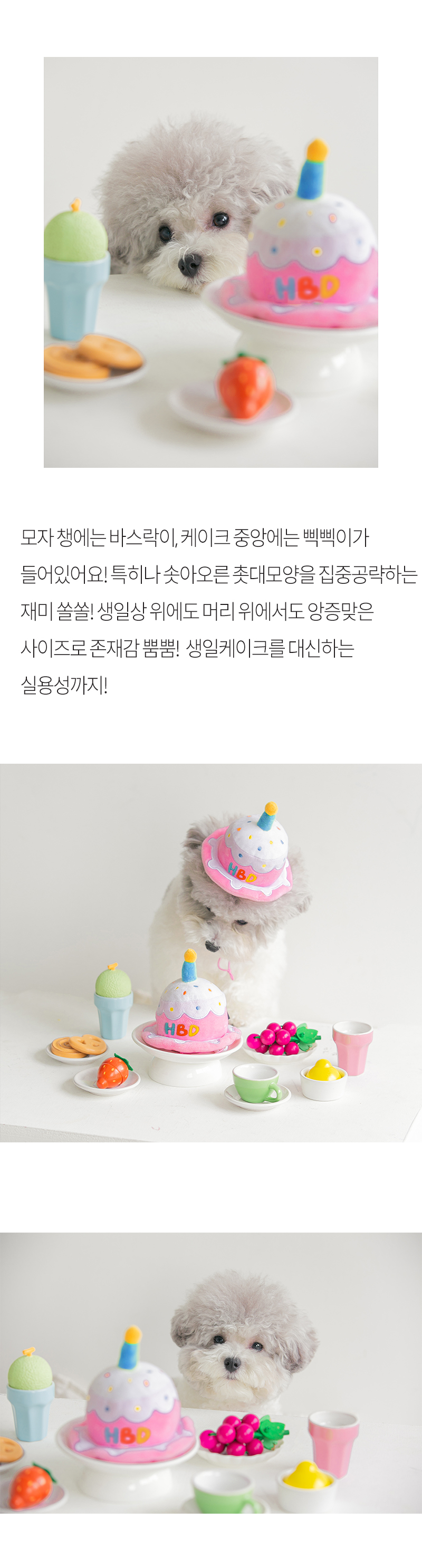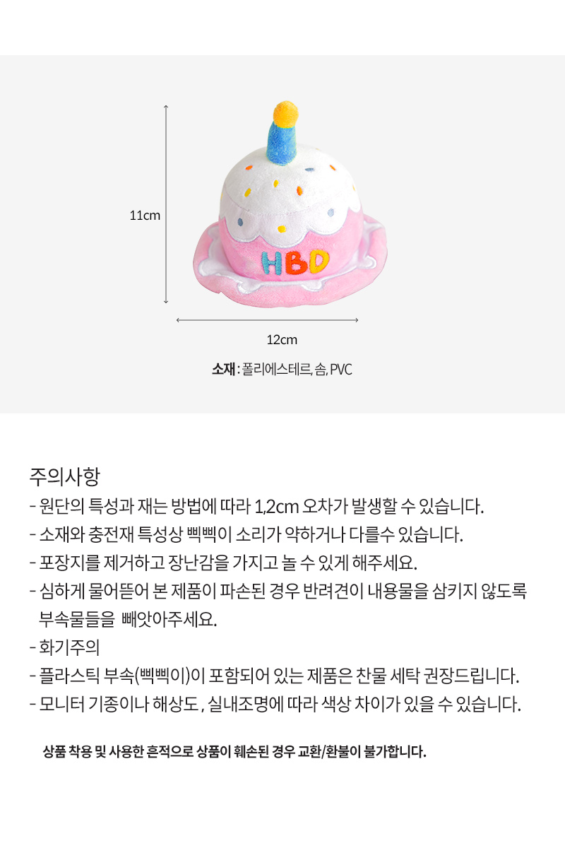 [바잇미] 파티케이크 모자 장난감 생일케이크 (삑삑/바스락)