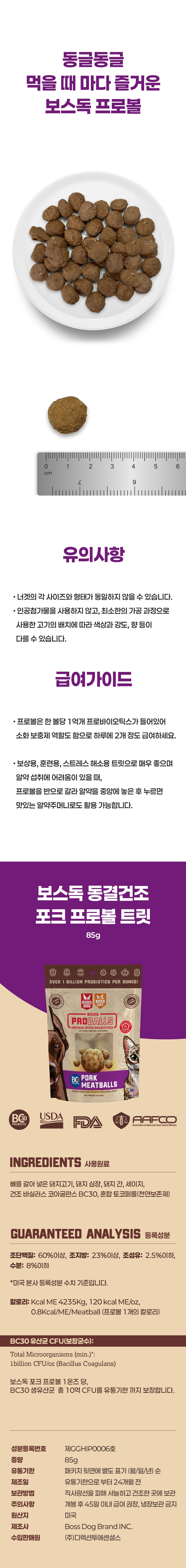 [보스독] 동결건조 트릿 프로볼 포크 (85g) 강아지 고양이 겸용
